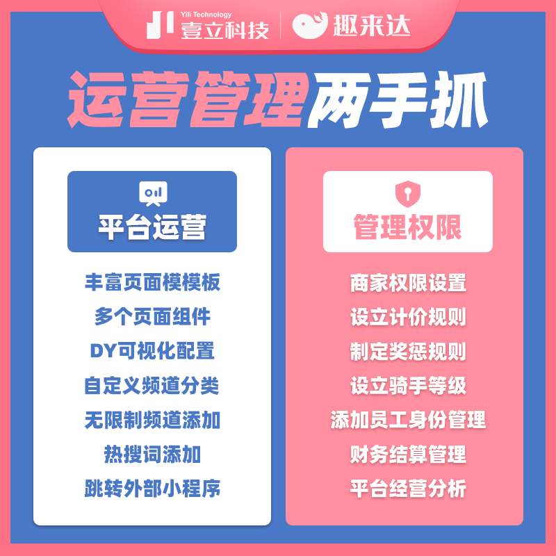 趣来达-外卖跑腿系统-H5+小程序+APP+PC,打造吃喝玩乐购”一站式“生活圈