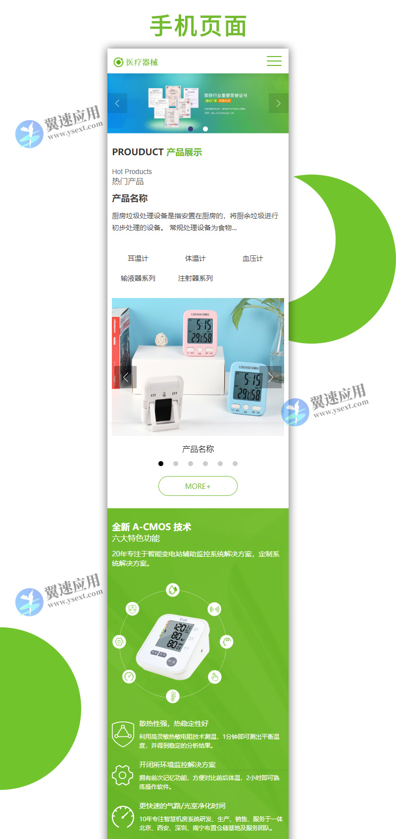 3、适用于产品展示、医疗器械、医院、仪表仪器网站模板;