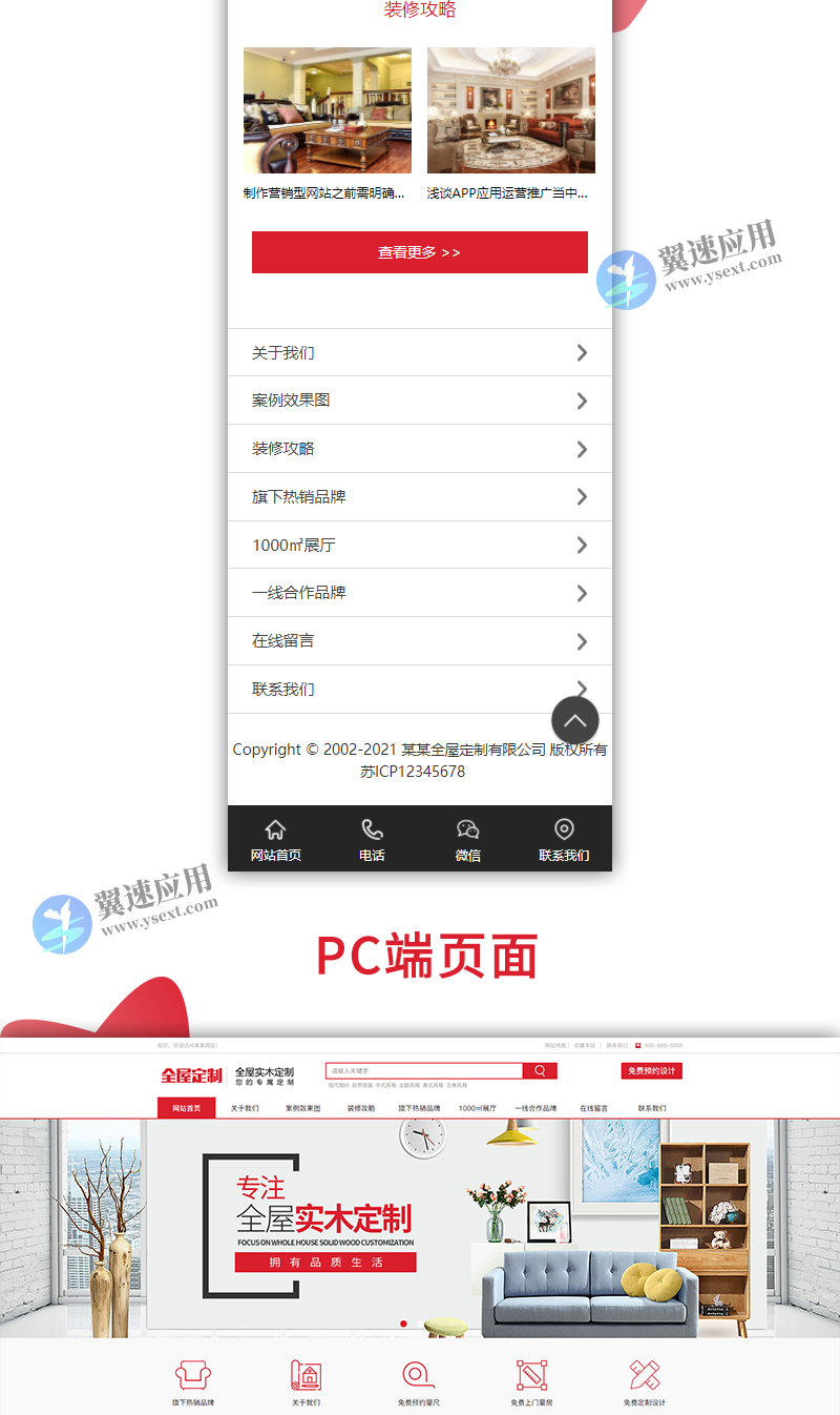 高端装修设计 全屋定制类网站模板源码(带手机版数据同步)