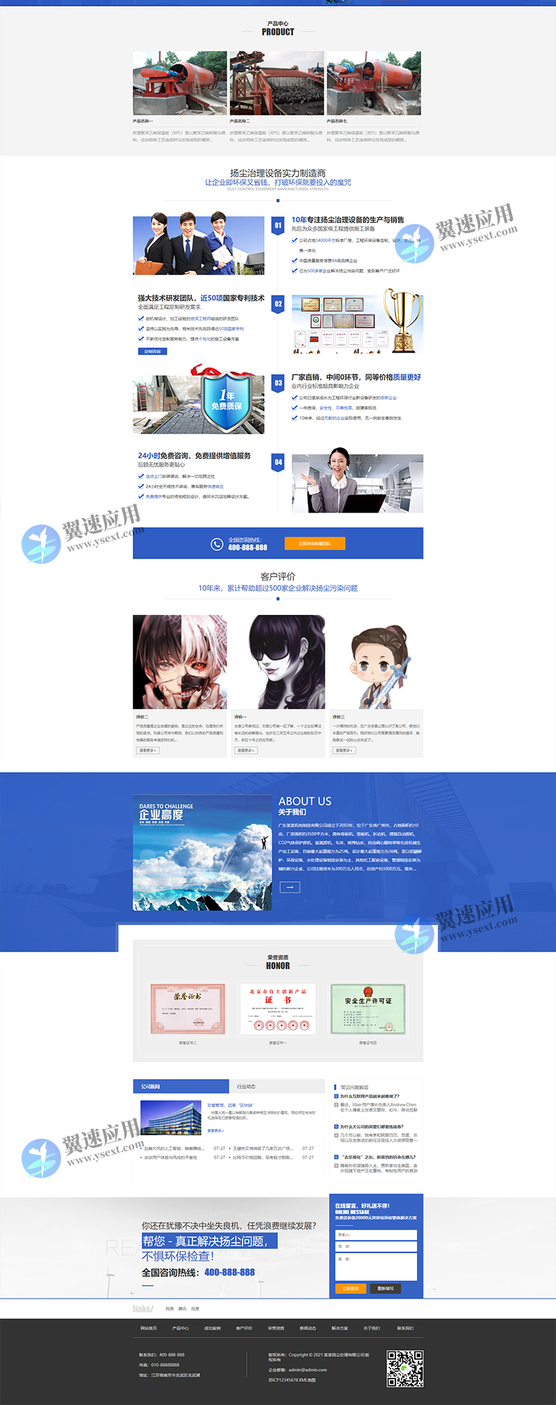 3、适用于营销型网站模板、除尘设备网站模板;