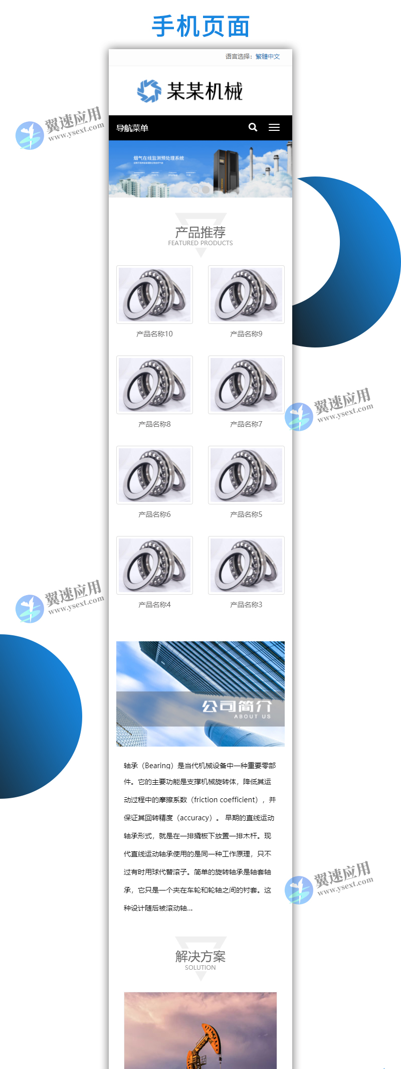 3、适用于机械加工、轴承齿轮设备类的网站模板;
