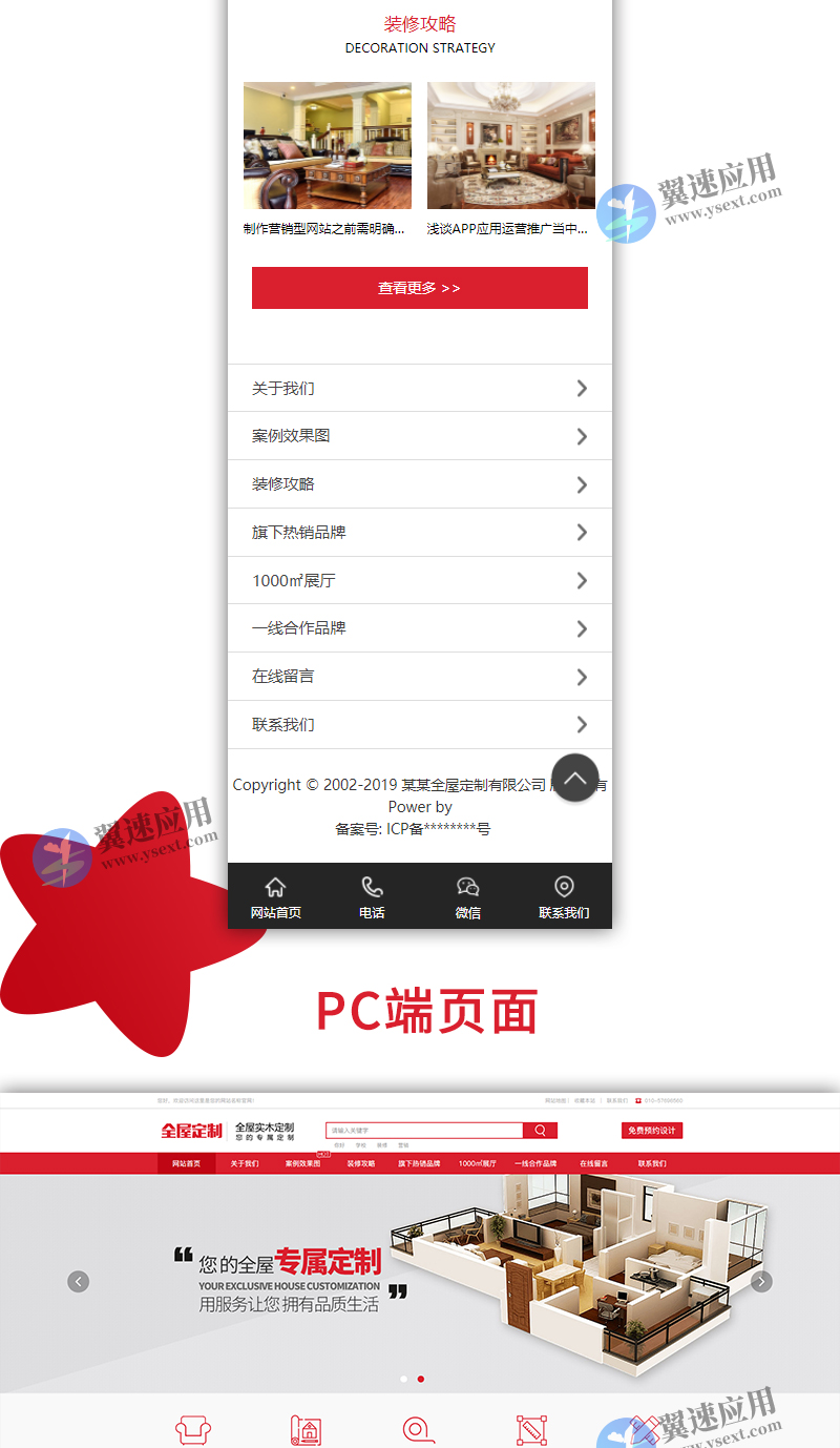 红色定制装修 设计装饰类公司网站源码模板(带手机站)