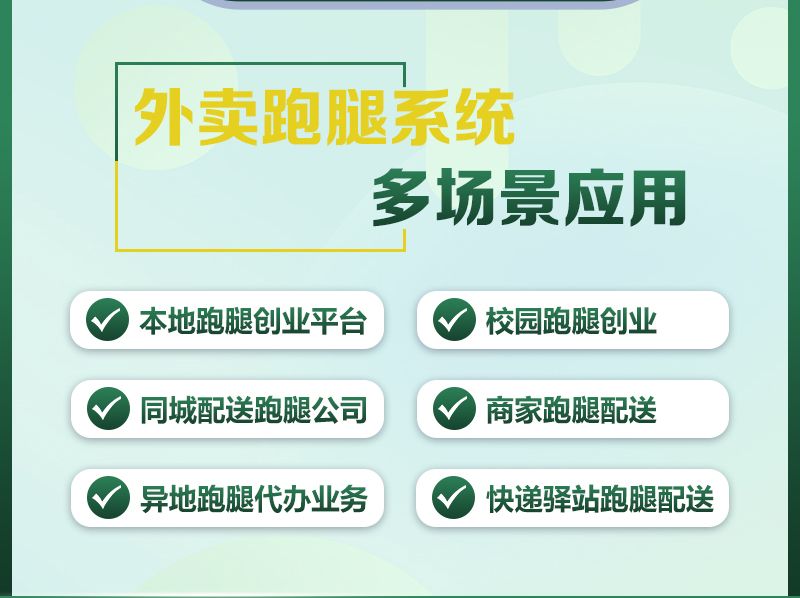 功能包含: 帮买、帮送、快递代取、礼物代送、外卖配送、代驾服务、货运搬家、上门维修、家政清洁、生鲜配送、骑手招募、骑手认证、派单/转单、接单、下单(手动下单/拍照下单/粘贴识别)等