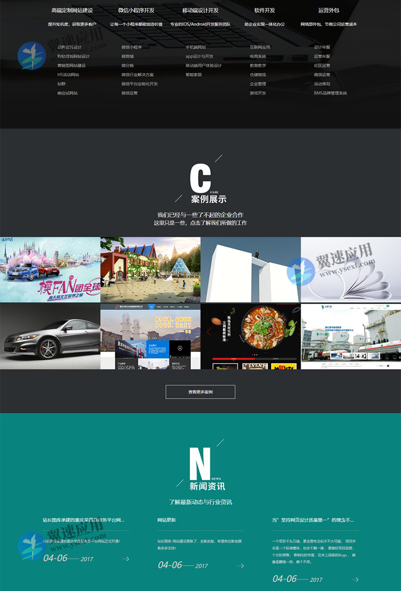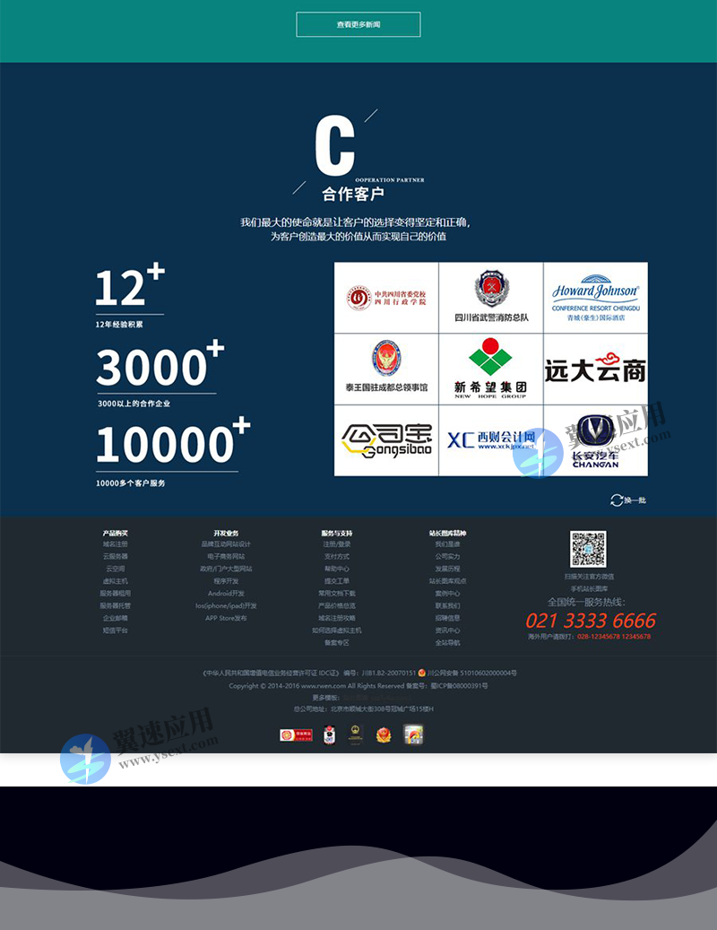 大气的互联网建站服务公司官网模板适用于:高端定制网站建设、微信小程序开发、移动端设计开发、软件开发、运营外包类型网站。主要有:服务、客户、案例、关于我们、联系我们等6个html页面。