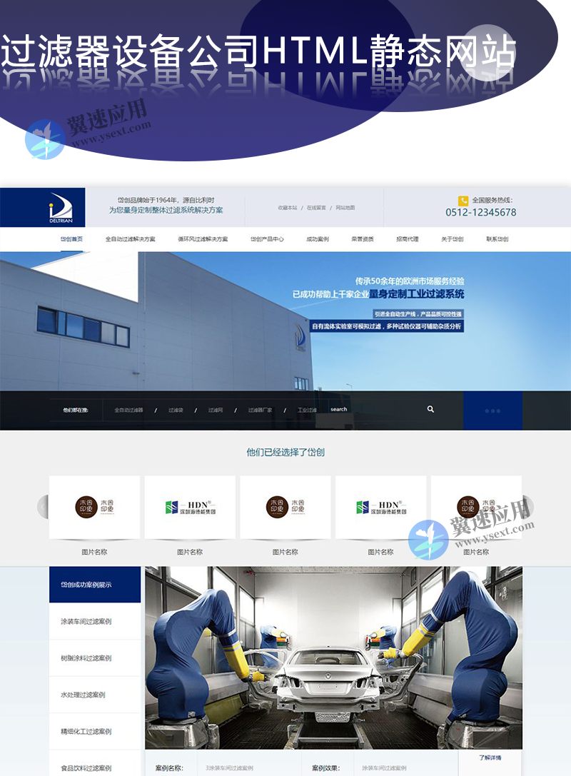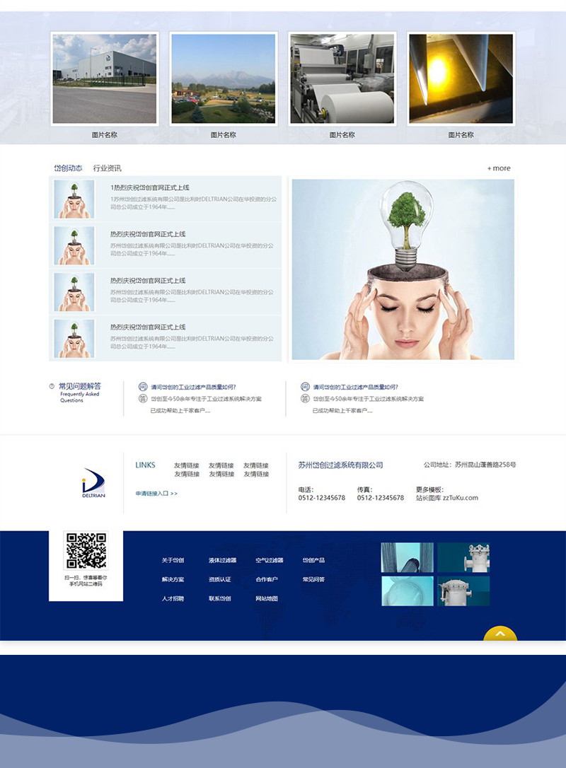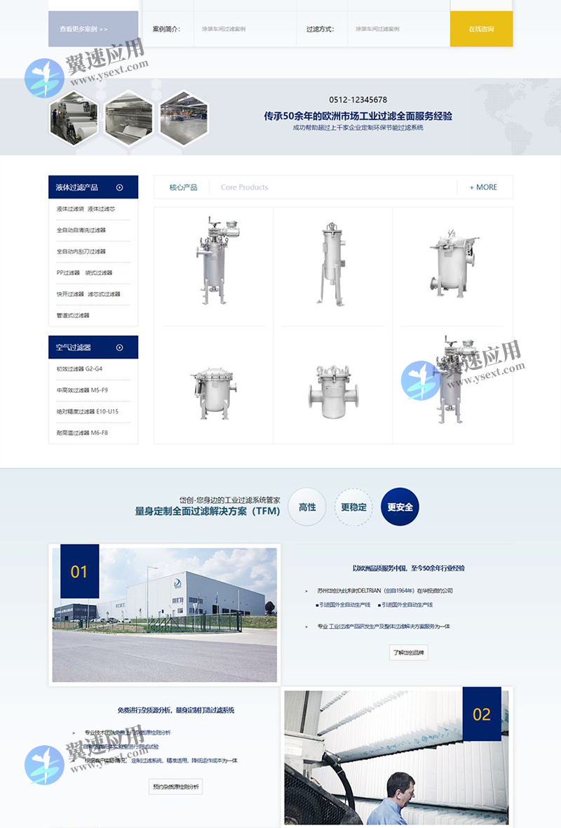 非常简单大气的一款过滤器设备企业公司模板,可以对接其他后台参数直接使用。
