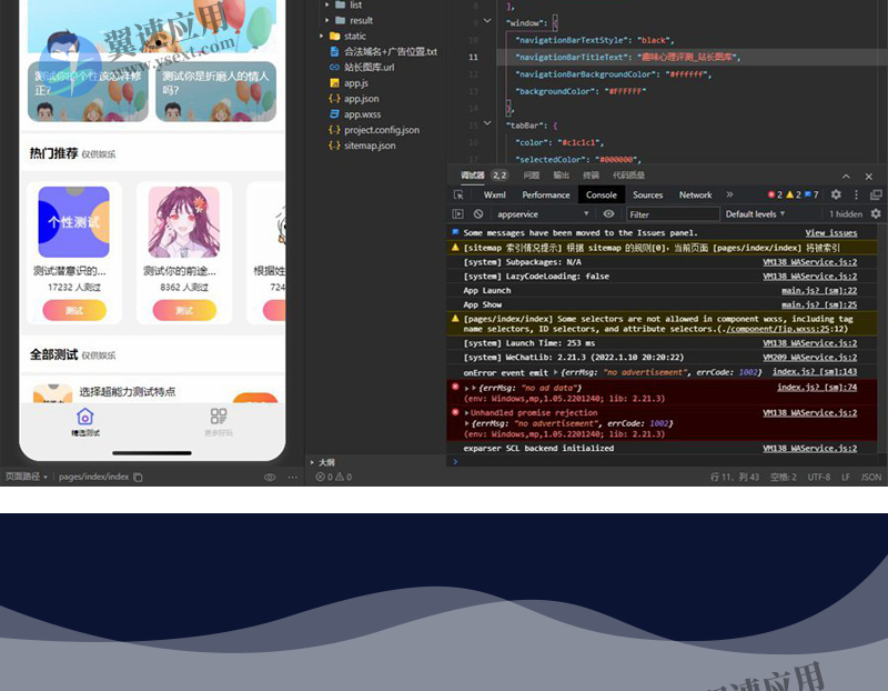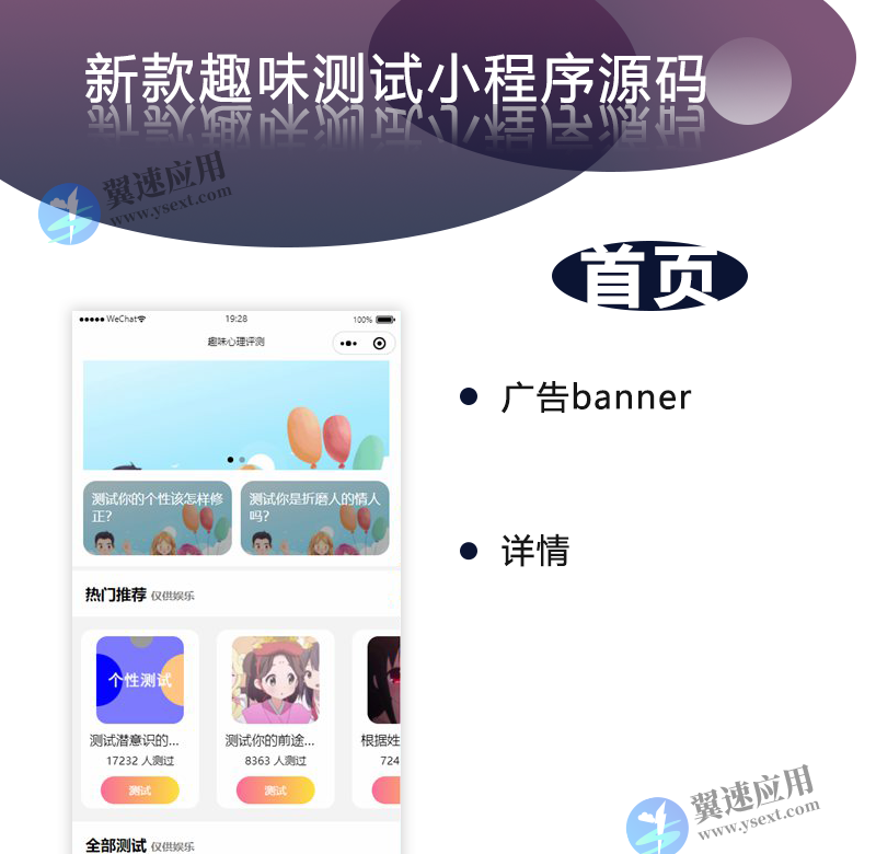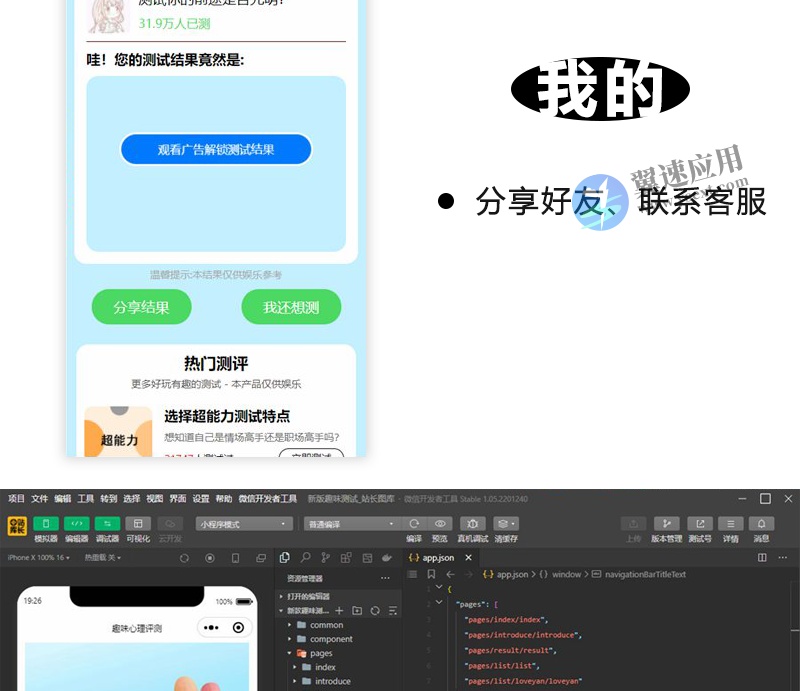 新款趣味测试小程序经过站长亲测后发布,内带广告流量主,测试内容如图,可以正常运行。免服务器免域名,设置几个安全域名即可。