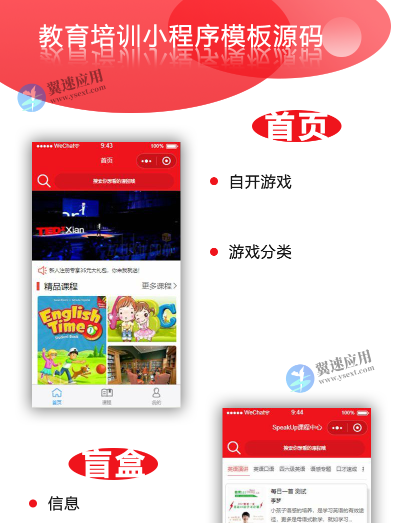 英语培训小程序教育培训小程序前端模板源码;适用于培训教育行业小程序开发使用。