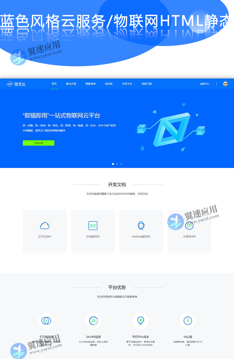 jQuery蓝色风格云服务/物联网HTML静态网站模板