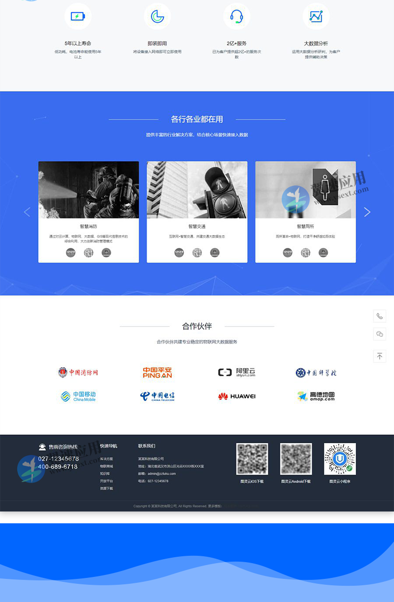 jQuery蓝色风格云服务,物联网HTML静态网站模板。适用于科技企业网站模板开发设计使用。