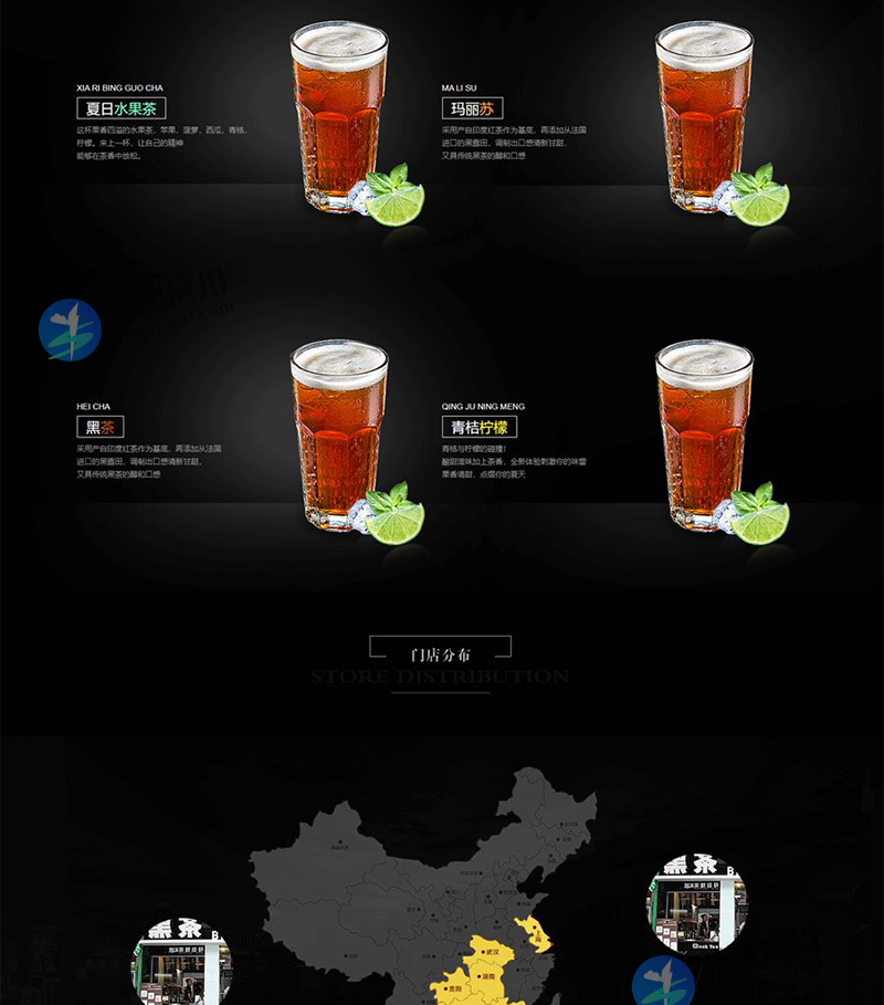 饮料茶公司网站模板,响应式HTML静态网站模板。适用于饮品、餐饮品牌公司网站模板开发设计使用。