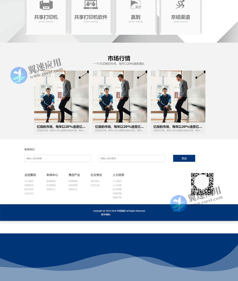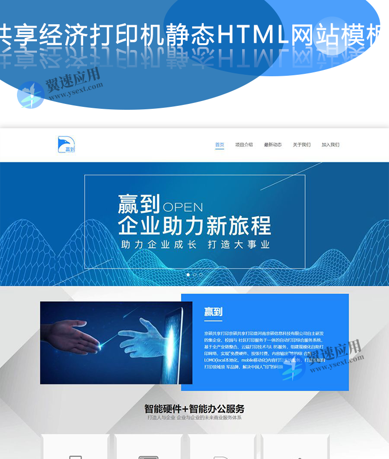 蓝色共享经济打印机静态HTML网站模板,适用于打印机科技公司企业网站模板开发设计使用。