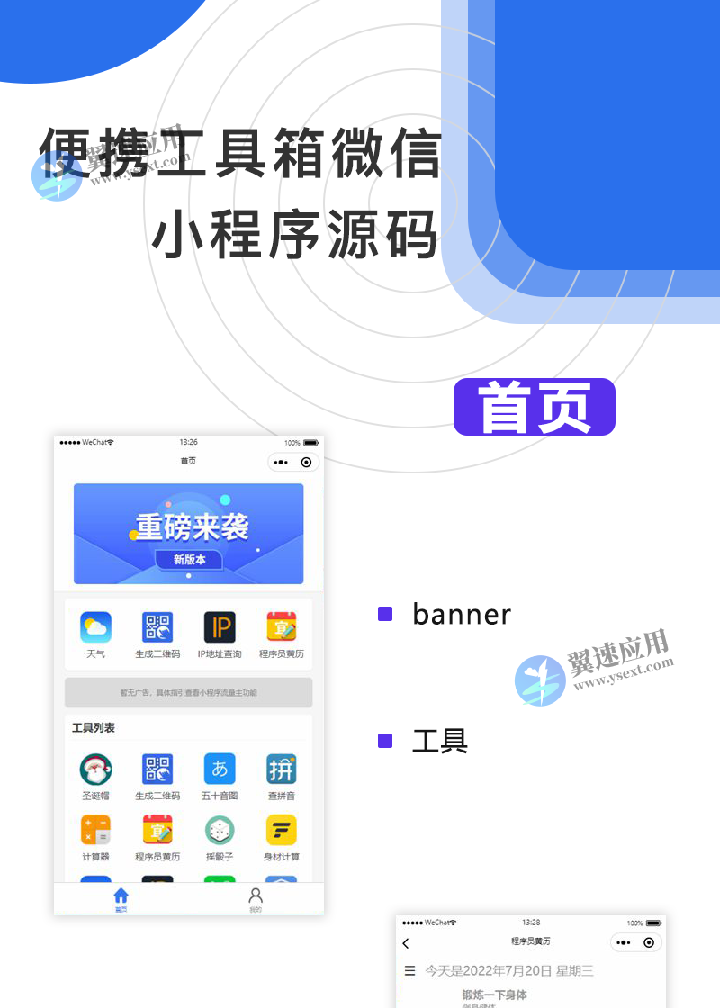 便携多功能工具箱云开发微信小程序源码,只有纯前端版本,该版本的口袋工具箱涵盖了13个功能