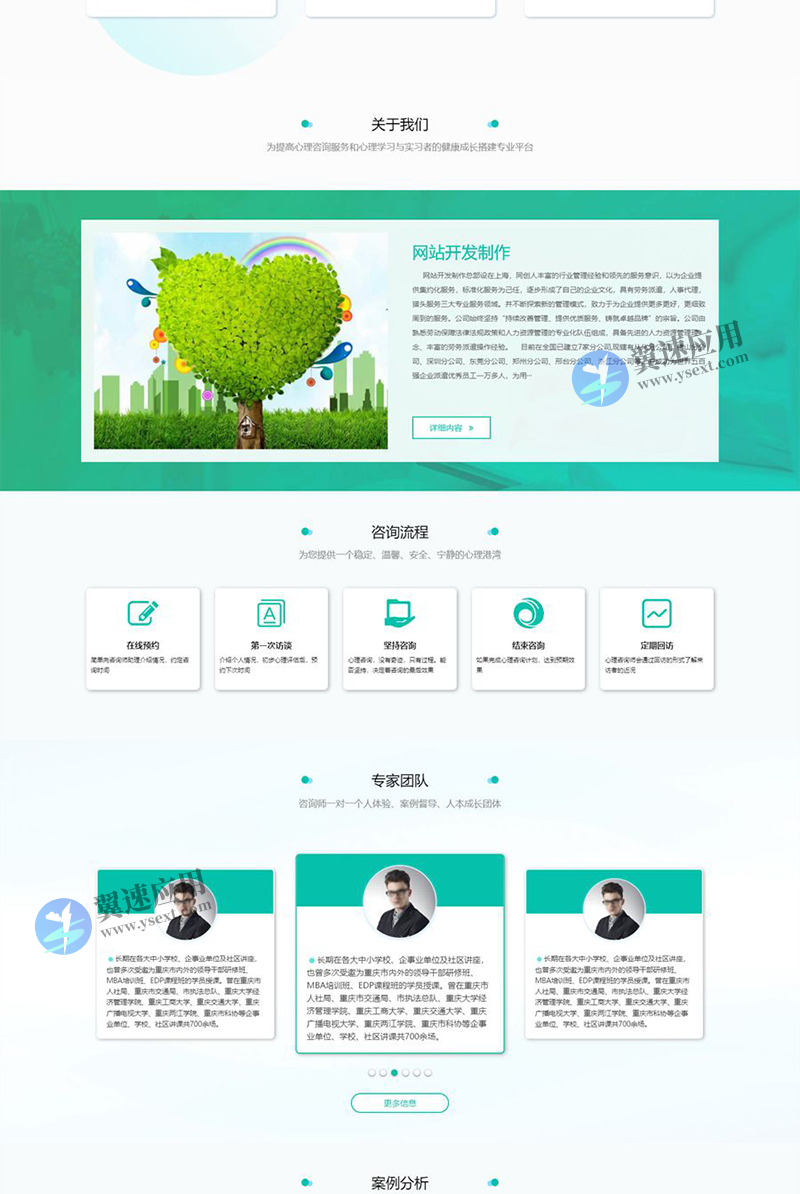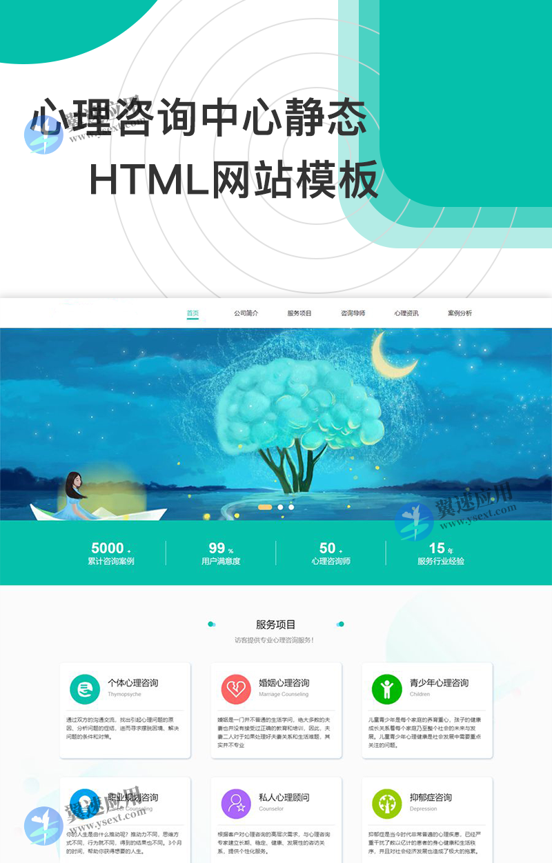 这是一套专业的心理健康咨询辅导中心网站的静态页面源代码。 页面包括环境详情、公司简介、企业荣誉、咨询导师、服务项目、案例分析、导师详情、项目详情、荣誉详情、资讯详情、案例详情,中心环境和信息列表共13页。