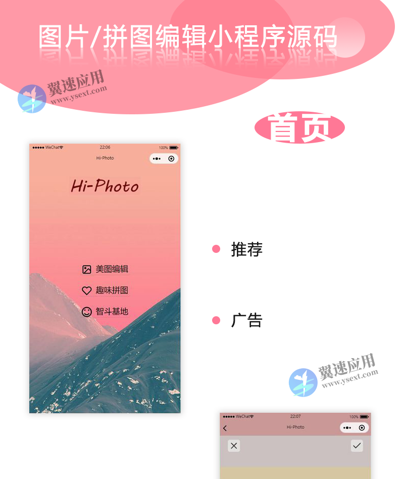 图片编辑/拼图小程序源码。全能、便捷的图片编辑工具。实现了图片裁剪、添加文字、涂鸦、拼长图、拼相框等图片编辑功能,另外还有一个简易的表情包制作功能。