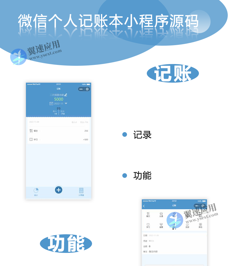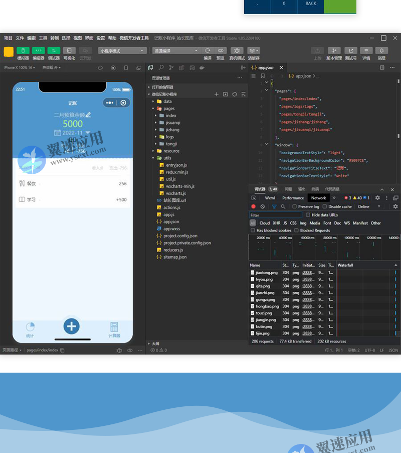 微信记账小程序源码,个人记账本小程序源码。一款实用的记账列表,分类记账,生活记账小程序工具。包含:添加记账、编辑记账、统计分析、计算器等4个页面。