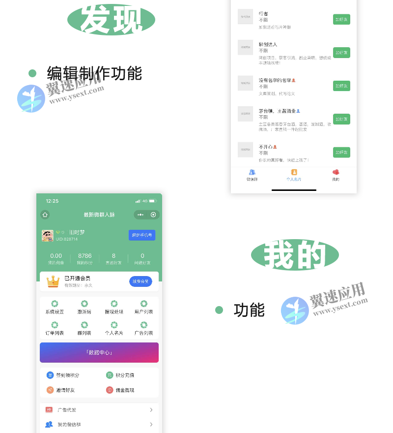 2、通过人脉广场,将商家信息通过名片进行展示,让资源对接、人脉推广更加便捷高效。为平台带来更多流量,让平台更有价值。