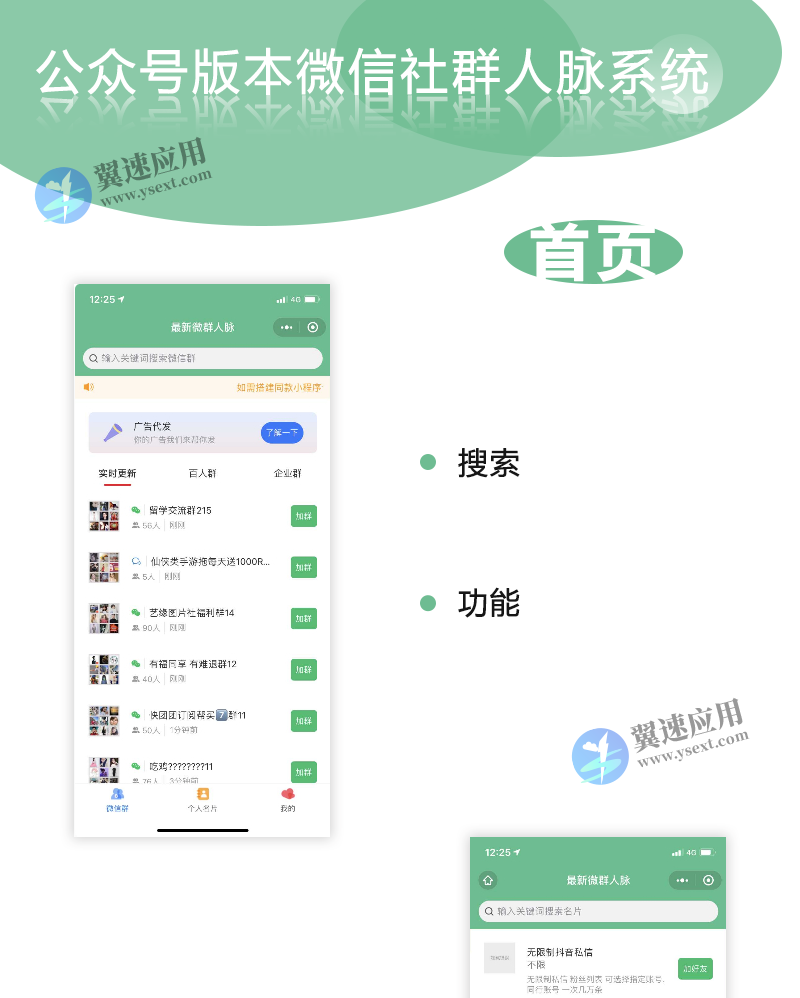 独立公众号版本微信社群人脉系统源码,社群空间站最新全开源源码,附有详细搭建教程。微信社群是一个集发布、展示社群信息、人脉推广的裂变工具/平台。