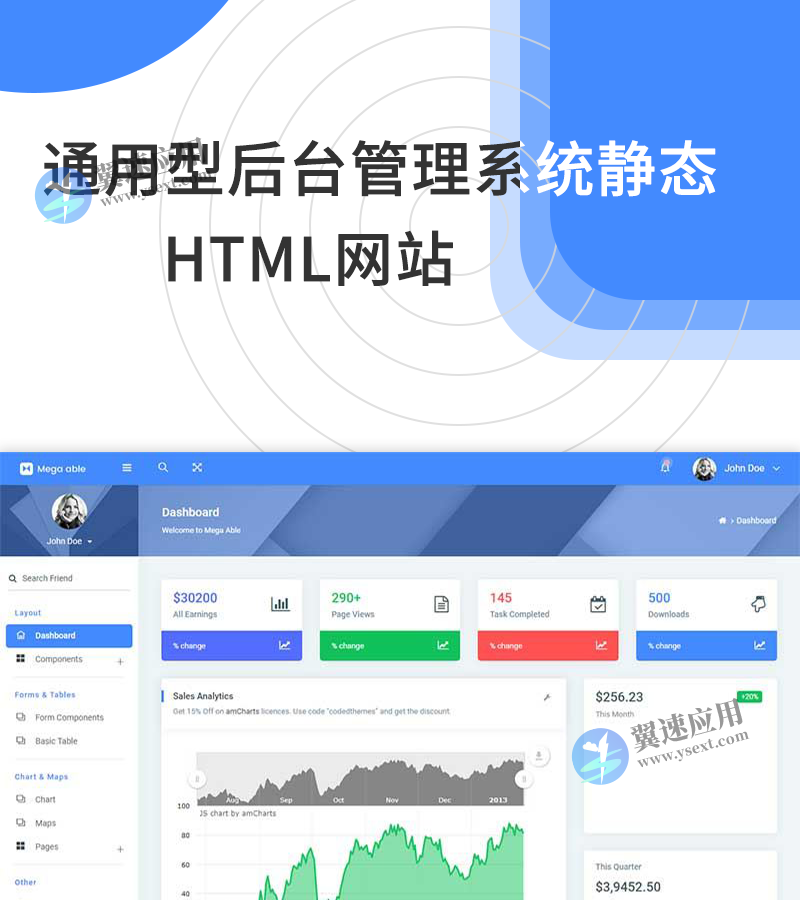 强大的通用型html后台管理系统模板,该后台模板有大量的可重用的和漂亮的UI元素,您可使用这套模板创建任何网站后台、电子商务管理项目等。