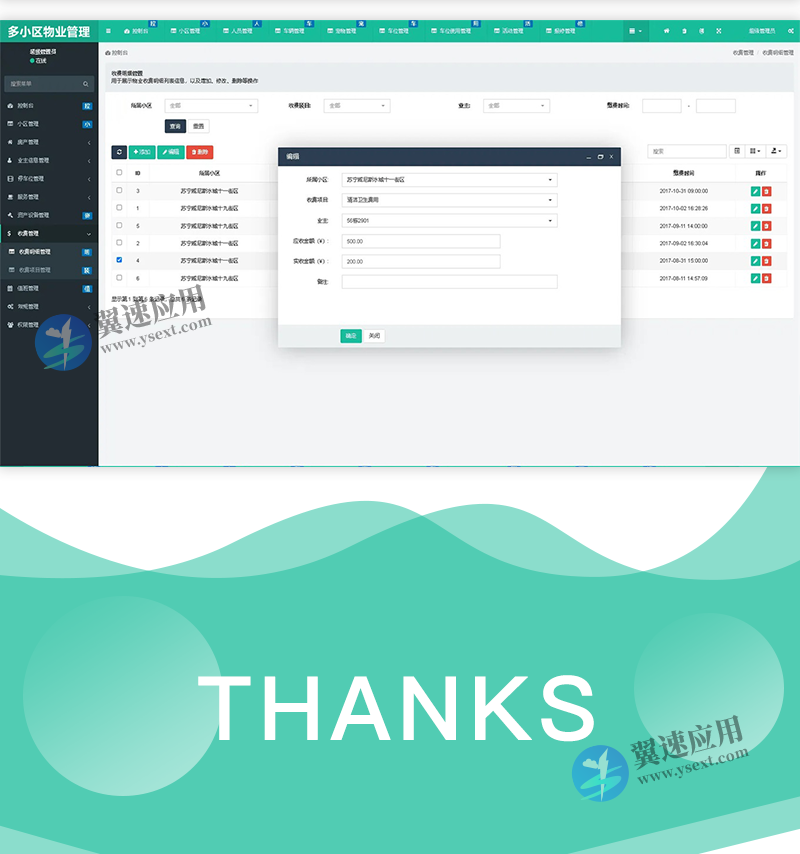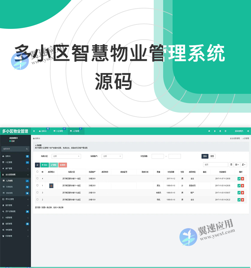 系统内置了四种角色:超级管理员、小区管理员、小区普通员工、业主,每一种角色都有不同的操作权限。